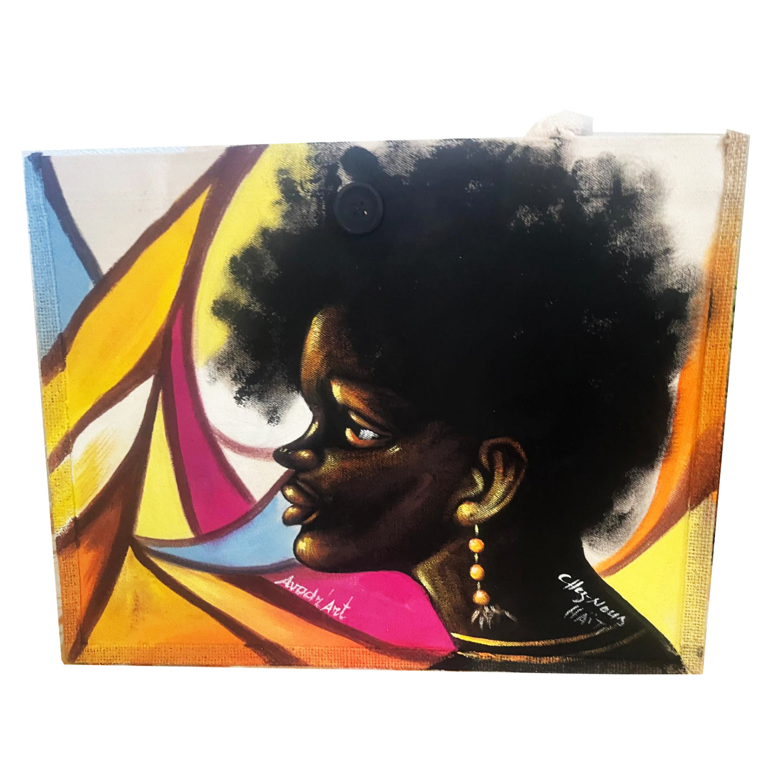 This one-of-one tote is hand-painted in Haiti, making it not just a fashion statement, but a wearable artwork infused with culture and soul. Durable, spacious, and deeply expressive, it brings gallery-quality art into your everyday style.